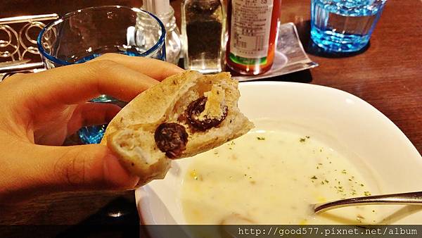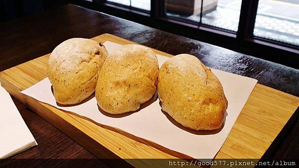 沒想到是鄉村雜糧麵包,現烤的熱呼呼,咬起來很有嚼勁