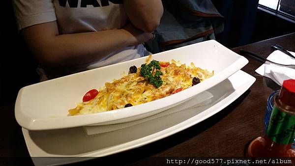 斜管麵硬度適中,上層的焗烤起司香氣濃郁