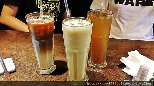 由左數來分別是冰咖啡、冰奶茶、密梅冰茶