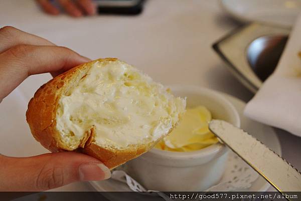 法國麵包跟奶油都可以再續,送上來時麵包用保溫餐布包裹著