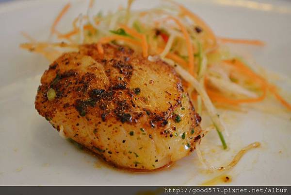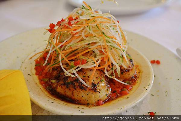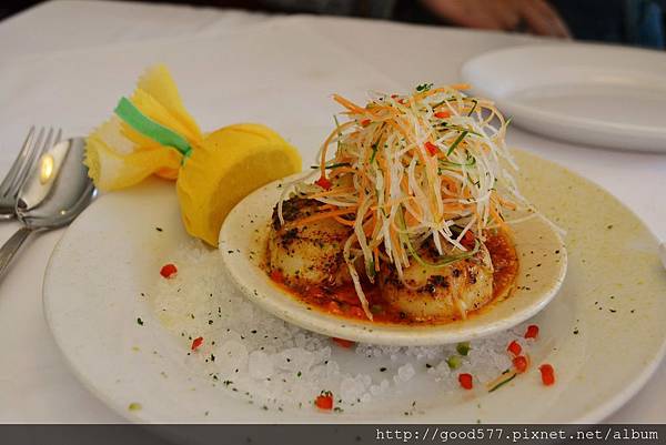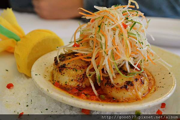 軟嫩的口感入口即化,微酸醬汁既開胃又能突出干貝的鮮美