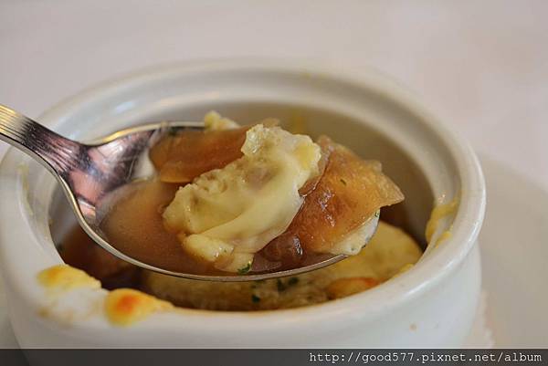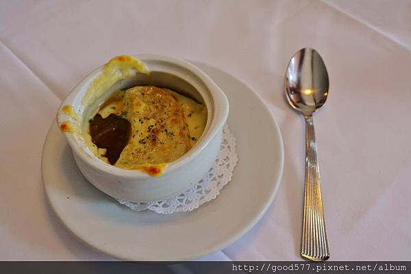 我們就選了洋蔥湯來品嘗囉~(雖然我私心更想喝龍蝦湯,大家有機會去吃可以點看看)