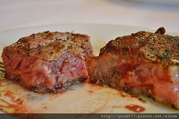 將肥肉和瘦肉一起入口香氣十足,吃肋眼牛排就是要享受它的油花呀!