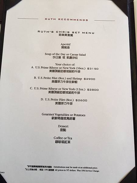 FB粉絲專頁:https://www.facebook.com/Ruths-Chris-Steak-House%E...