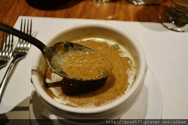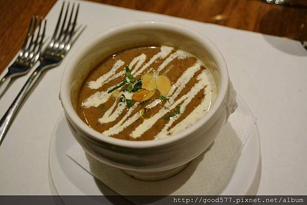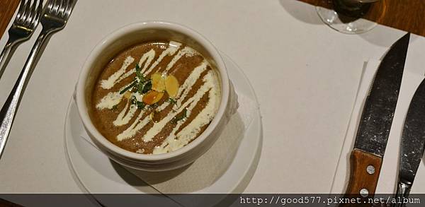 喝起來有好像有洋蔥的鮮甜味,蘑菇經過長時間的熬煮已經溶解在湯裡