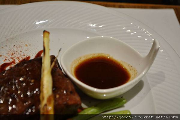 好吃的牛排其實不需要任何沾醬,只要沾一點玫瑰鹽就十分美味了